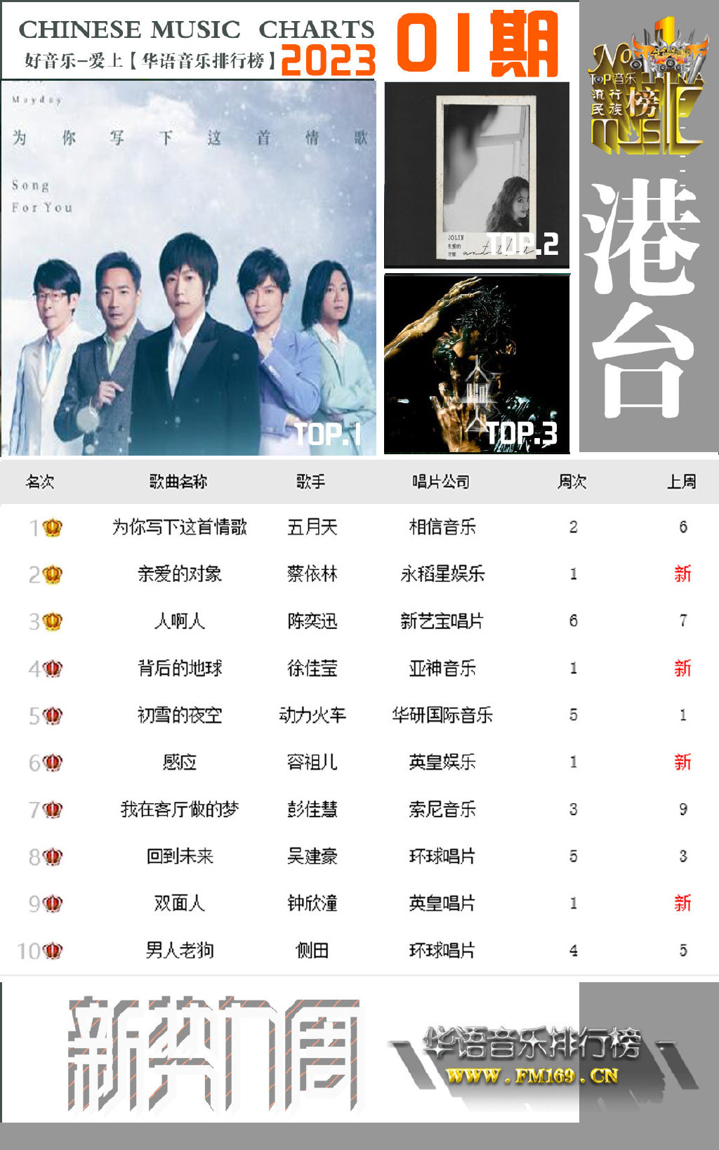 华语音乐排行榜【港台总榜】第695期2023年第一期榜单排名