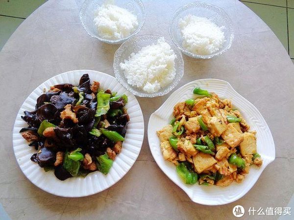 这是我和老公的晚餐,苦瓜加点肉丝和豆豉一起炒的,酱香味浓的比较好吃,是我的大爱。这样炒出来苦瓜不苦了,搭配米饭真下饭。三鲜豆腐泥,是比较清淡些,加了一块豆腐和猪肉末、鸡蛋一起炒出来,比较鲜美。炒茄子是剩菜,老公人的晚餐,这样不是减肥餐吧。