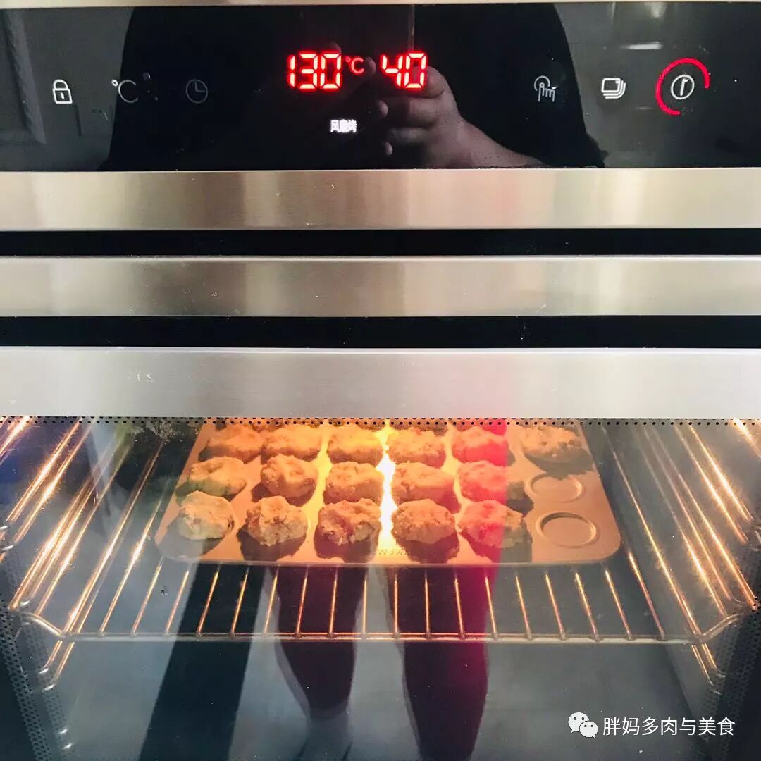 7.揉成小团,进烤箱中层,上下火130度(提前预热)十分钟后看饼底成黄色关掉下火!!!保持上火130度再烤30分钟!烤出来以后是按下去是微微有点软的!千万不要觉得软就是没烤好!里面不生就好了!
