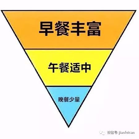 调整饮食。意思是把一天能摄入的热量分散到三餐里,一般来说早餐摄取热量占全天的20%,午餐和晚餐各占40%,如果你想减肥的话,可以将蛋白质含量最高的食物当早餐吃,比较油腻或是热量非常高的肉类午餐的时候吃,晚餐就吃小菜或是水果,另外晚餐后绝对不能吃任何零食哦。