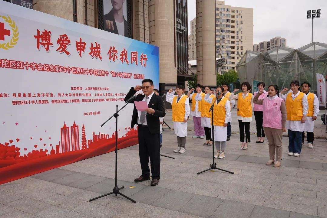 为迎接第76个“5·8”世界红十字日,区红十字会联合多家冠名红十字医疗机构等理事单位在上海环球港南广场举办“博爱申城 你我同行——普陀区纪念5·8世界红十字日暨首个‘红十字博爱周’主题活动”。本次活动由普陀区红十字会主办,月星集团上海环球港、同济大学附属同济医院、上海市儿童医院、区红十字医院(中心医院)、区红十字人民医院、利群红十字医院、区红十字护理医院、曹杨红十字医院(曹杨社区卫生服务中心)、上海万护通中医诊所有限公司等9家单位共同协办。