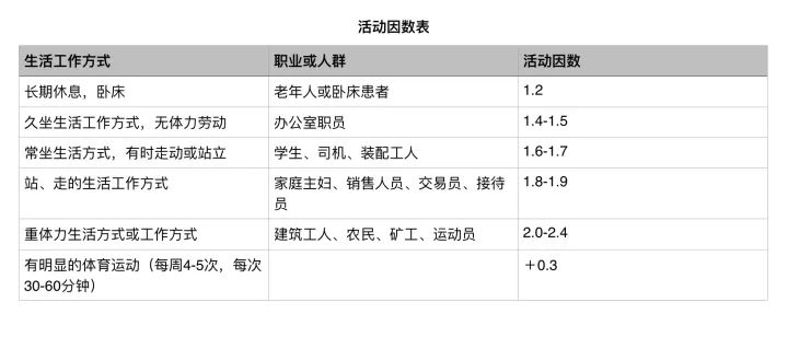 (基础代谢率×活动因素)-热量缺口=每天所摄入的能量
