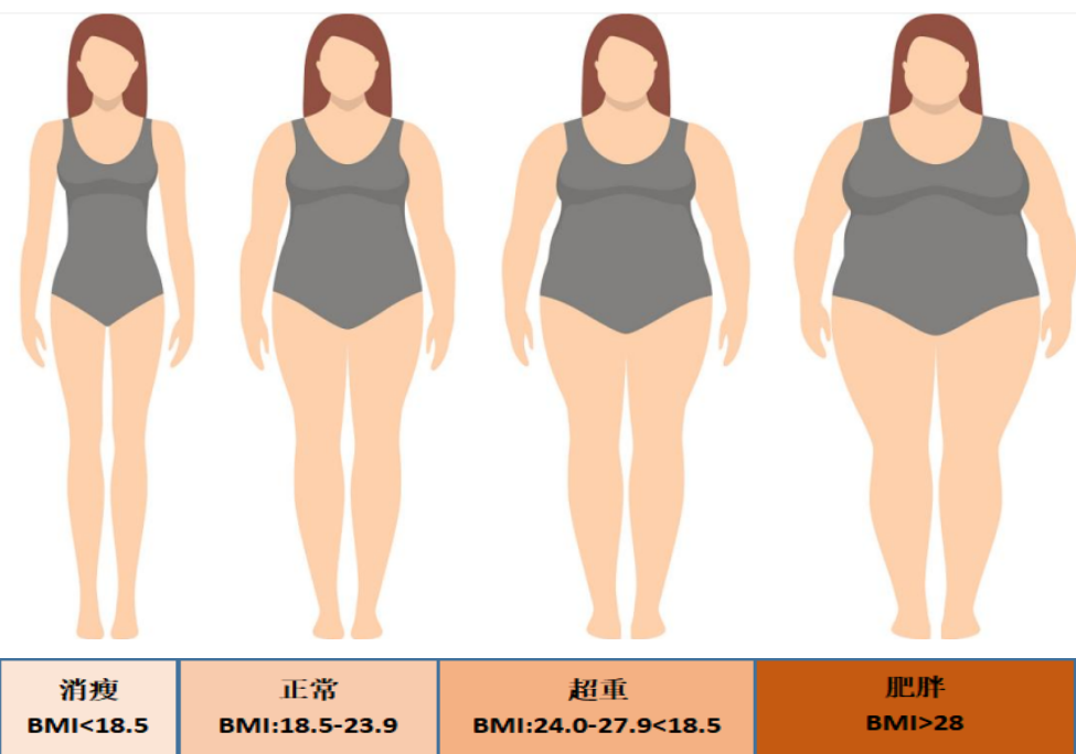 体质指数(BMI)大于28,或男性腰围≥90厘米、女性腰围≥85厘米即为肥胖,需要积极干预。