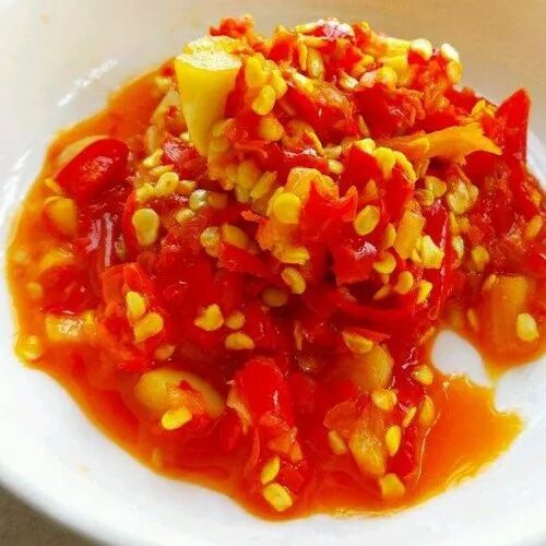 可以选择生吃辣椒,直接切成块或切成丝拌凉菜吃,这样吃不但能更好地保留维生素C,还能吃到清甜的辣味。除了生吃辣椒还可以炒着吃,例如辣度适中的青椒可以适合搭配肉丝、鸡蛋、豆干炒。这时青椒就是能多吃的蔬菜,多吃几口也不担心摄入了过多的热量,还可以享受到辣味。方法二:自制低盐剁椒来代替辣椒酱