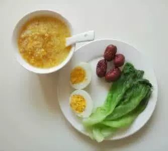 早餐:水煮蛋一颗+稀饭一碗