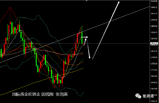 周线级别:金价上周大幅回落收跌至5周均线下方,且临近10周均线支撑,附图指标KDJ已转死叉向下运行,MACD多头信号开始走弱,暗示将有进一步走低触及10周均线1850美元附近支撑的预期,多头有望在此再度开启反弹攀升,如跌破此支撑,下方将关注1814美元或1765美元附近跟进ZZ指标看止跌反弹,继续等待刷新历史高点的预期。