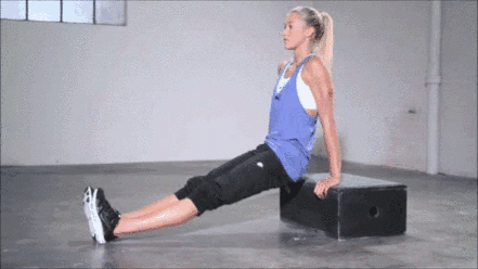 动作要领:双手指尖朝外,反向与地呈45度,越向前伸展,肱三头肌发力越强,切记勿用两腿带动身体发力。每次30个,完成5组。