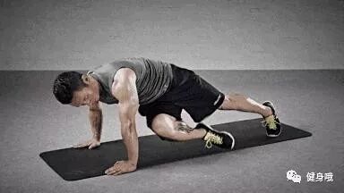 动作要领:两手撑地,但不发力,而是用腿部快速提膝的方式,让下腹发力。身体前倾绷直,与地面保持斜45度。每次30个,完成5组。