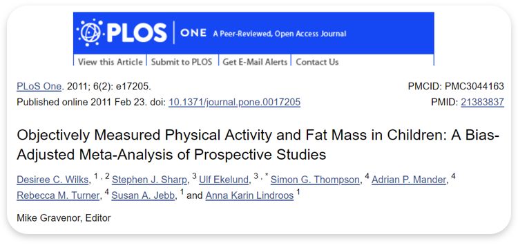 2011年的一项研究,关注了儿童体脂量和体育活动之间的关系。研究对象是4-11岁孩子。结论是:运动并不是影响小朋友体重的关键因素。