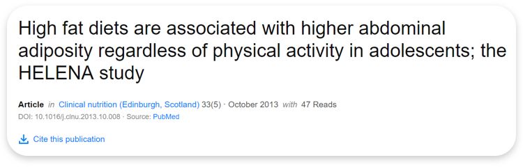 一项针对青少年的研究。发现不论是否经常运动,只要饮食中摄入过多脂肪,腰上都会长肥肉。