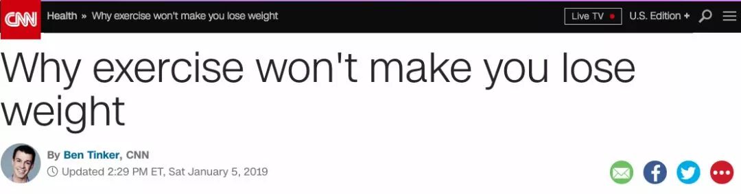而CNN毫不客气地给大家泼了一盆凉水,发了一篇文章,告诉你为什么别指望运动减肥。
