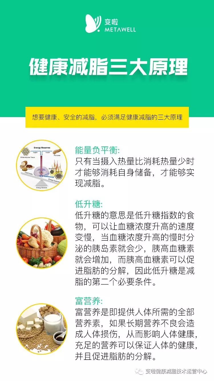 分析了市场上常见的减肥误区,减肥简单吗?减肥容易吗?不容易要保证能量负平衡(保持摄入热量低又要保证消耗的是脂肪,又要保证人体每天必须的能量供应而不去消耗蛋白质(就必须要吃东西)容易做到吗,如果容易做到满大街就没有胖子了。那么怎么样才能科学的减肥呢?(1)科学的减脂,必须符合三大基本条件:能量负平衡,低升糖,富营养。